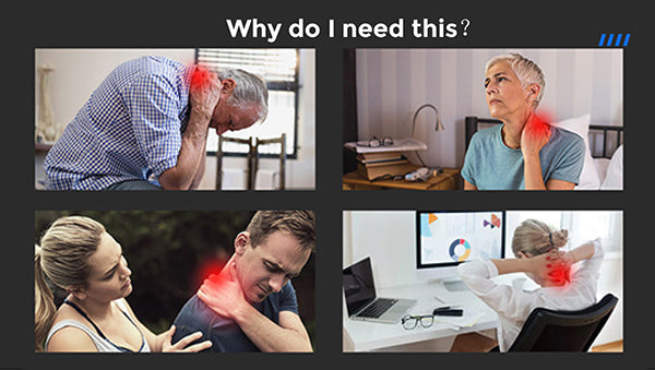 The neck massager Instead of a surface massage that simulates kneading and vibration, it uses 3 combinations and 12 levels of intensity, deeply stimulates the muscle groups around cervical spine to get relax, please Keep your neck moist before use to reduce stinging. (Please remove your jewelry before use, do not use this device if you have metal implants or pacemaker)