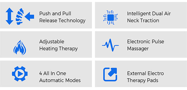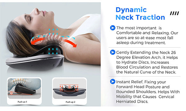 Lift the heavy weight off your shoulders and feel a total serene relaxation with the Cervical Traction Device. The traction feature is designed to reduce pressure of pinched nerves on your neck which can help alleviate headaches and migraines.
