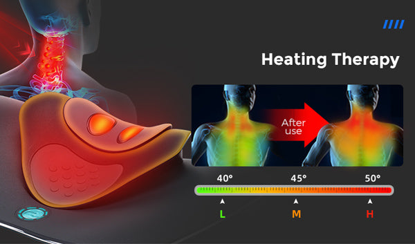 Three adjustable temperature settings(104℉, 113℉, 122℉ (40℃, 45℃, 50℃), apply soothing heat therapy to aching neck muscles, drive away from the cold and dampness of the neck, and provide heat for the muscles. Increase blood flow, relieve soreness, numbness, swelling, pain, and relax the cervical spine.
