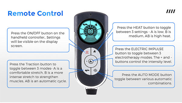 With Intelligent Dual Rise Bidirectional Curve Traction Technology the device pulls apart vertebral space evenly relieving pressure between discs or off of a compressed nerve.